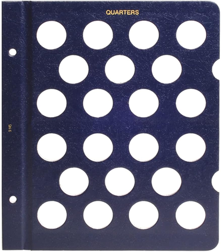 Whitman coin folders are federal blue, with silver or copper design and lettering and include a page of useful information