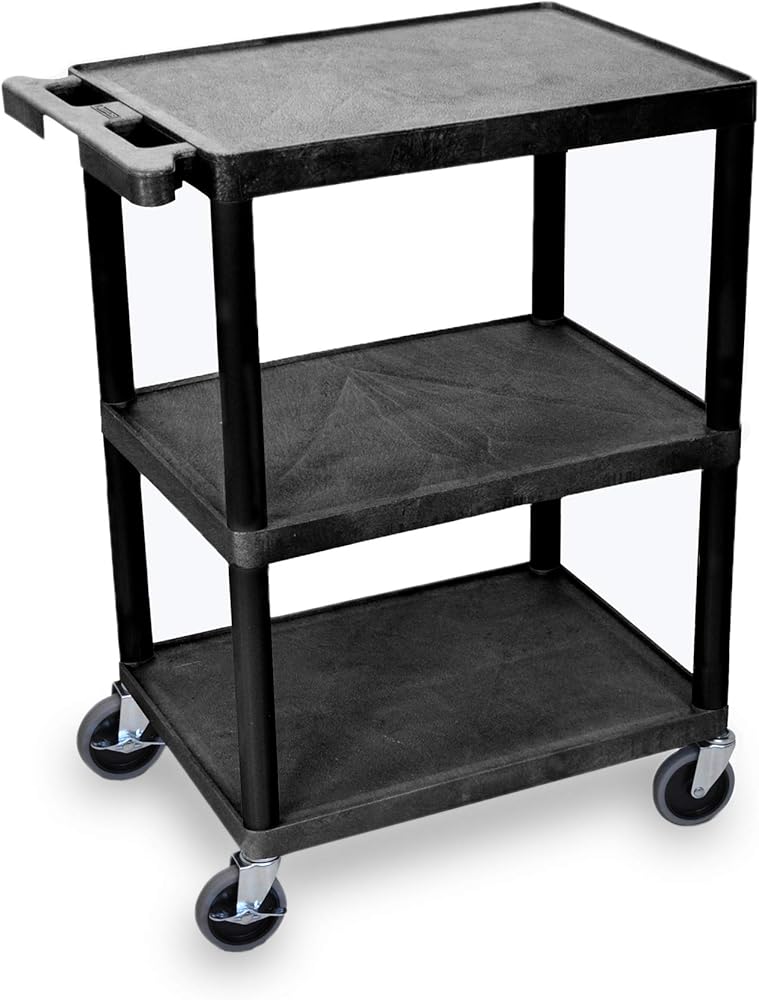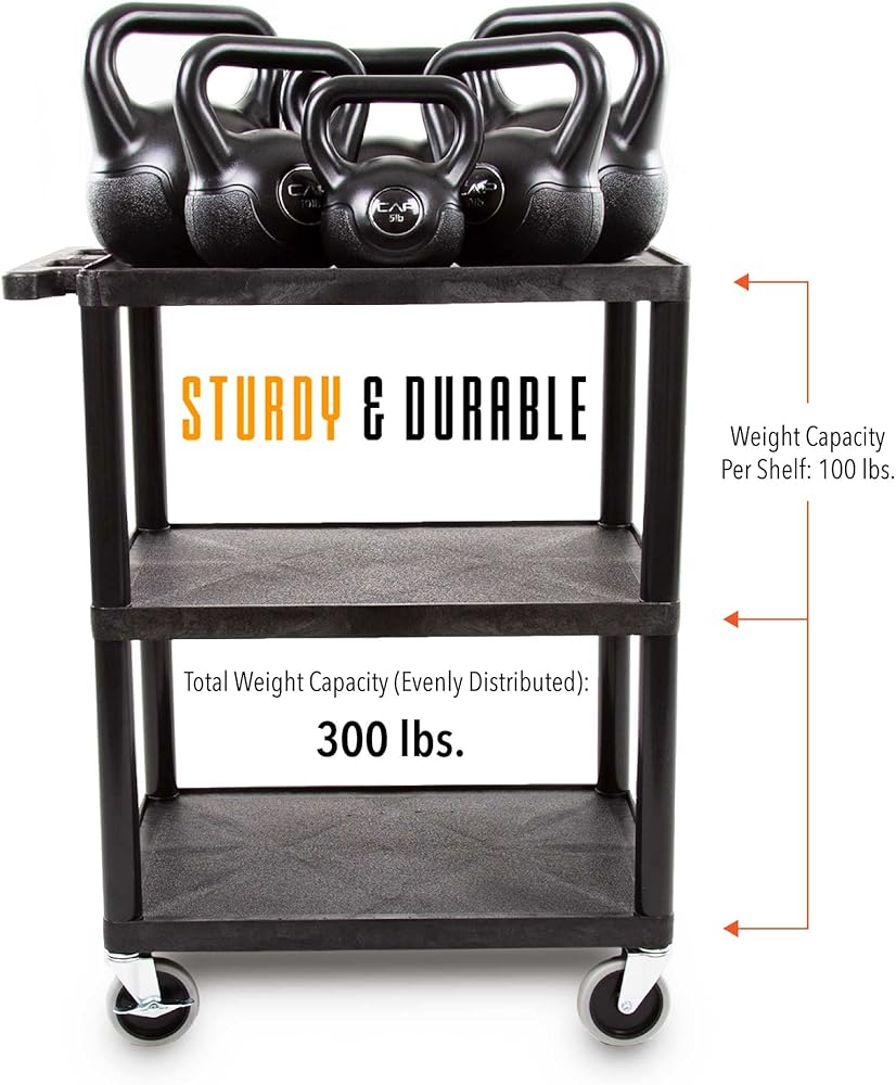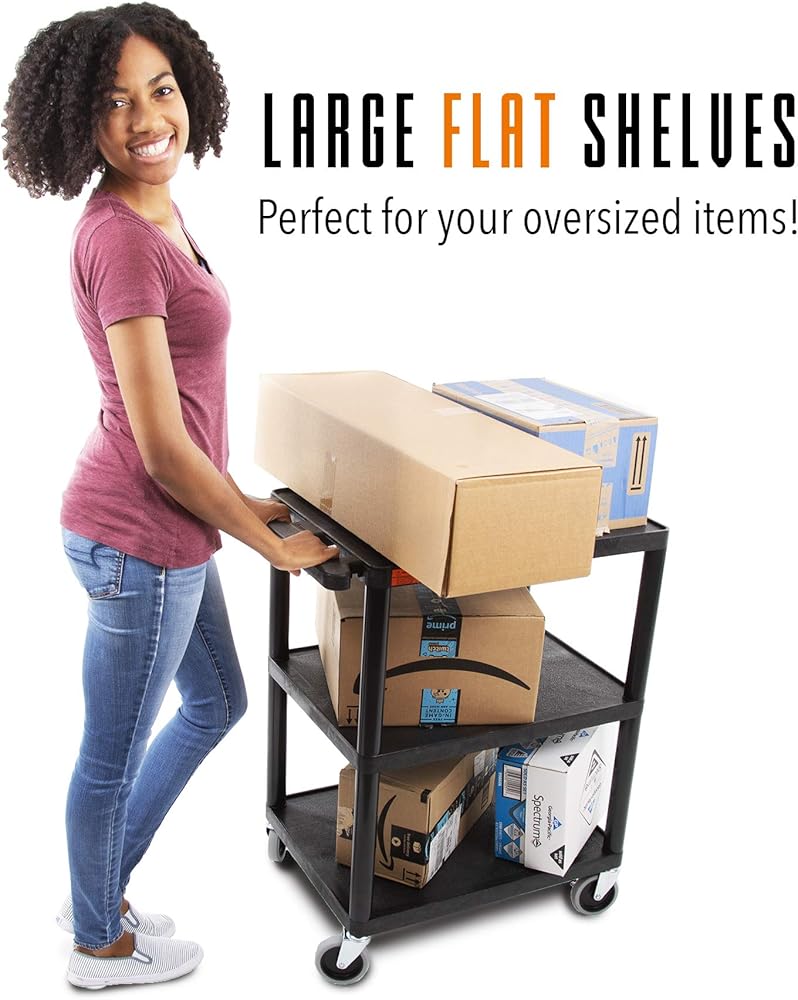 Multipurpose Utility Cart - This two-tier cart is perfect for wheeling supplies around the office, moving boxes in the warehouse, or transporting food for catering. It's a versatile organizer for multiple uses.