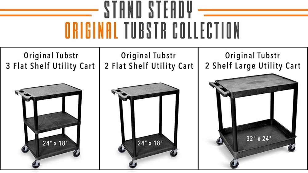 Stand Steady Tubstr 3 Flat Shelf Printer Cart, Compact and Heavy-Duty Utility Storage - Supports up to 300 lbs, Great for Home, Office, Warehouse, 28 x 18 in Tool Table, Moves Cargo Easily (Black)