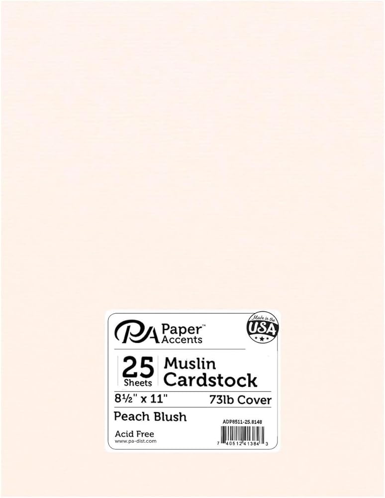 Paper Accents Cardstock is an acid free, lignin free, buffered, archival quality heavy cardstock. Great for scrapbooking, card making and rubber stamping. 8.5"x 11". Muslin 73lb Peach Blush- Fabric texture on one side.