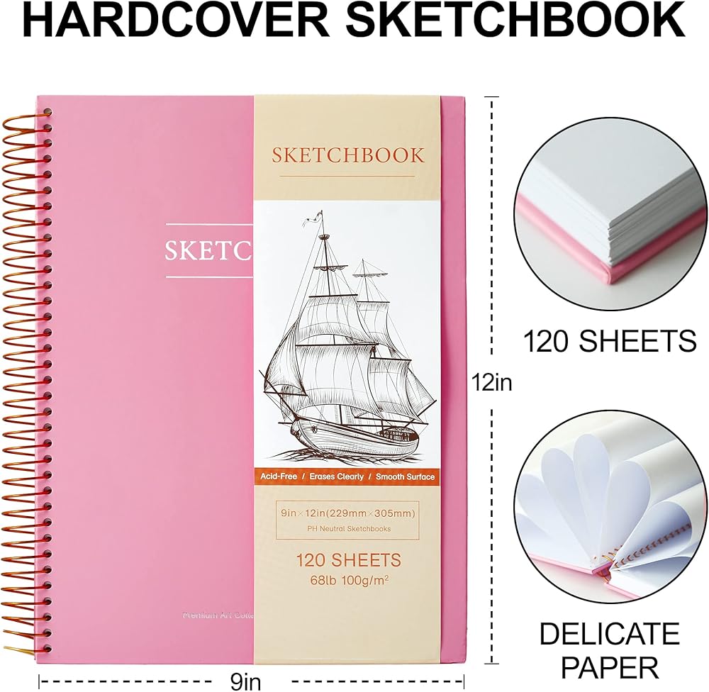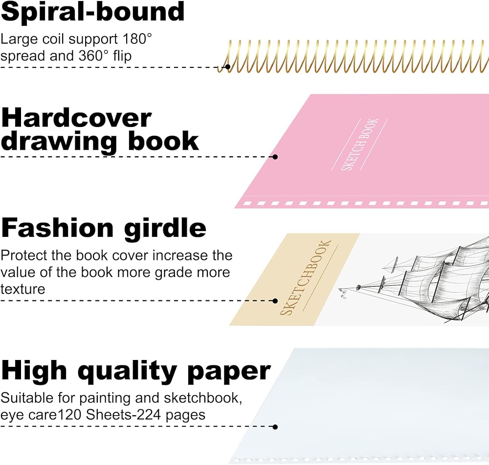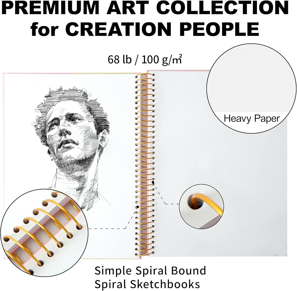 【STURDY SPIRAL BINDING】Hardcover sketch book adopting strong spiral binding design. The sketchpad for drawing has a sturdy cover that protects the pages from damage, making it perfect for outdoor sketching or use during travel. The ample space of the spiral coil provides a better way to turn and flip. You can create portraits, sketches, landscapes, and more all on this artboard, provide you with a better drawing and writing experience