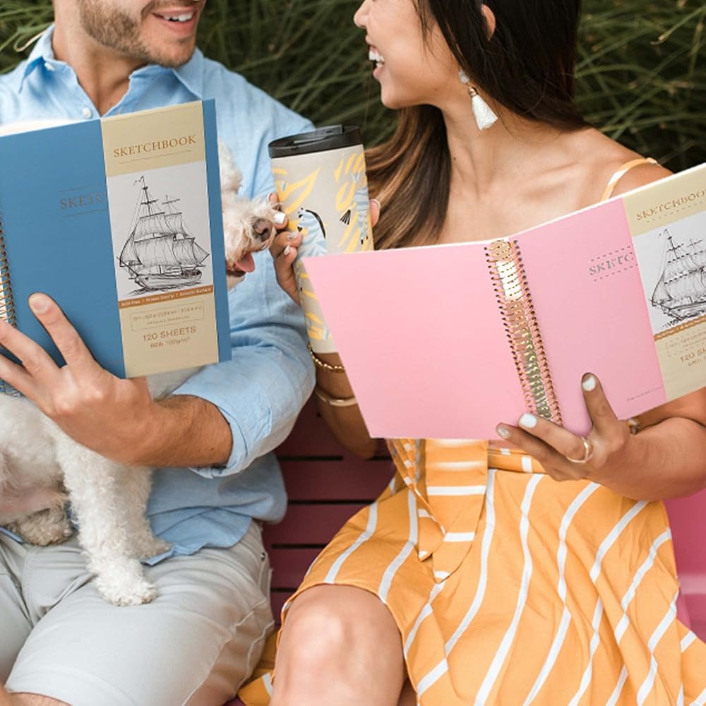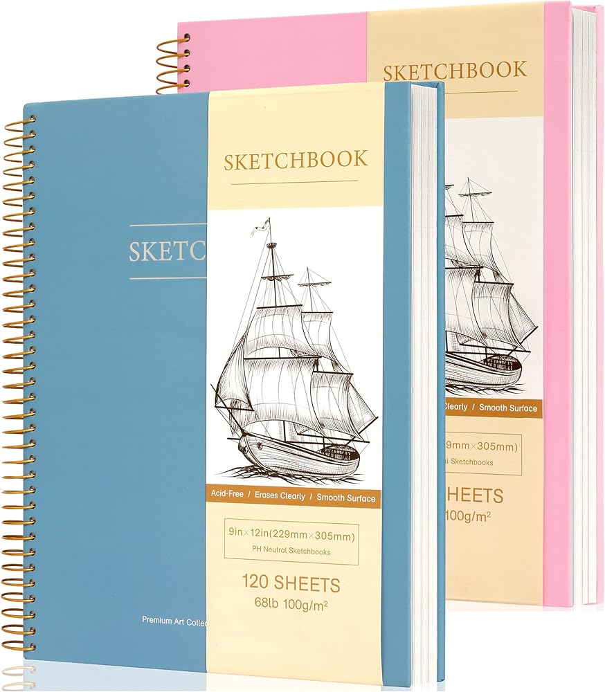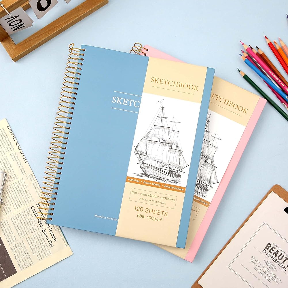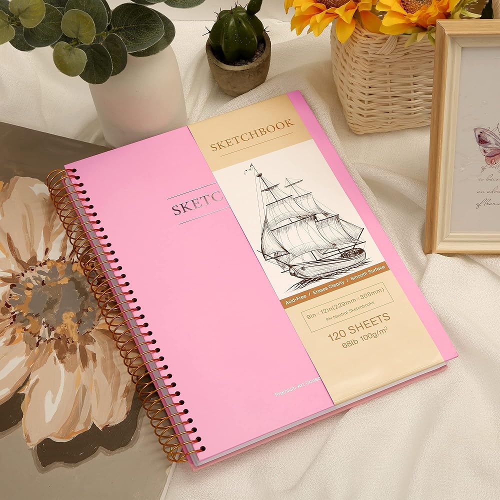 【STURDY SPIRAL BINDING】Hardcover sketch book adopting strong spiral binding design. The sketchpad for drawing has a sturdy cover that protects the pages from damage, making it perfect for outdoor sketching or use during travel. The ample space of the spiral coil provides a better way to turn and flip. You can create portraits, sketches, landscapes, and more all on this artboard, provide you with a better drawing and writing experience