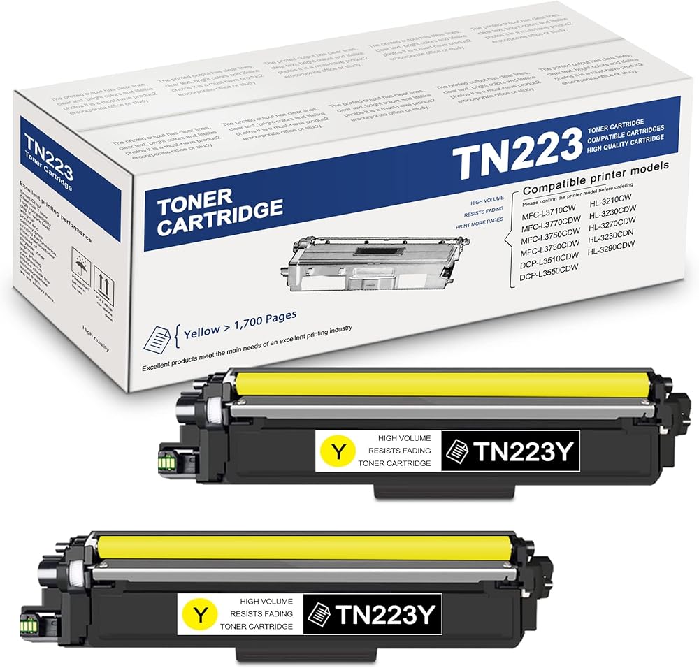 Van Enterprises Viviansky Compatible 2 Pack Yellow TN-223 TN223 TN223Y TN-223Y Toner Cartridge Replacement for Brother HL-3230CDW HL-3270CDW HL-3230CDN HL-3290CDW MFC-L3750CDW MFC-L3730CDW Printer