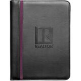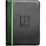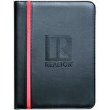 Black leatherette material is debossed with theREALTOR logo for an upscale look and color strip down the side.