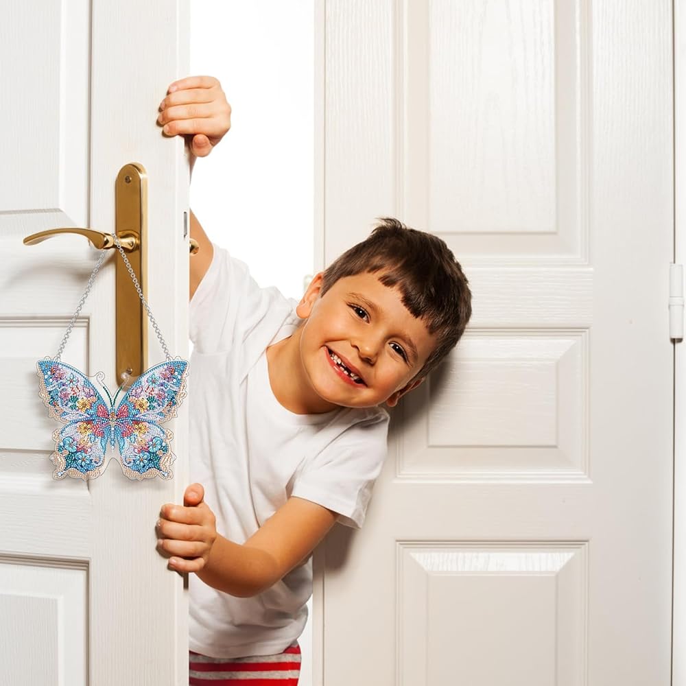 Scettar 2 Pcs Dimond Art Paintings Butterfly, Diamond Art Kits for Adults, DIY Crystal Gem Craft Painting Kit, Special Shape Diamond Art Suncatcher Hanging Ornament for Home and Garden Decor