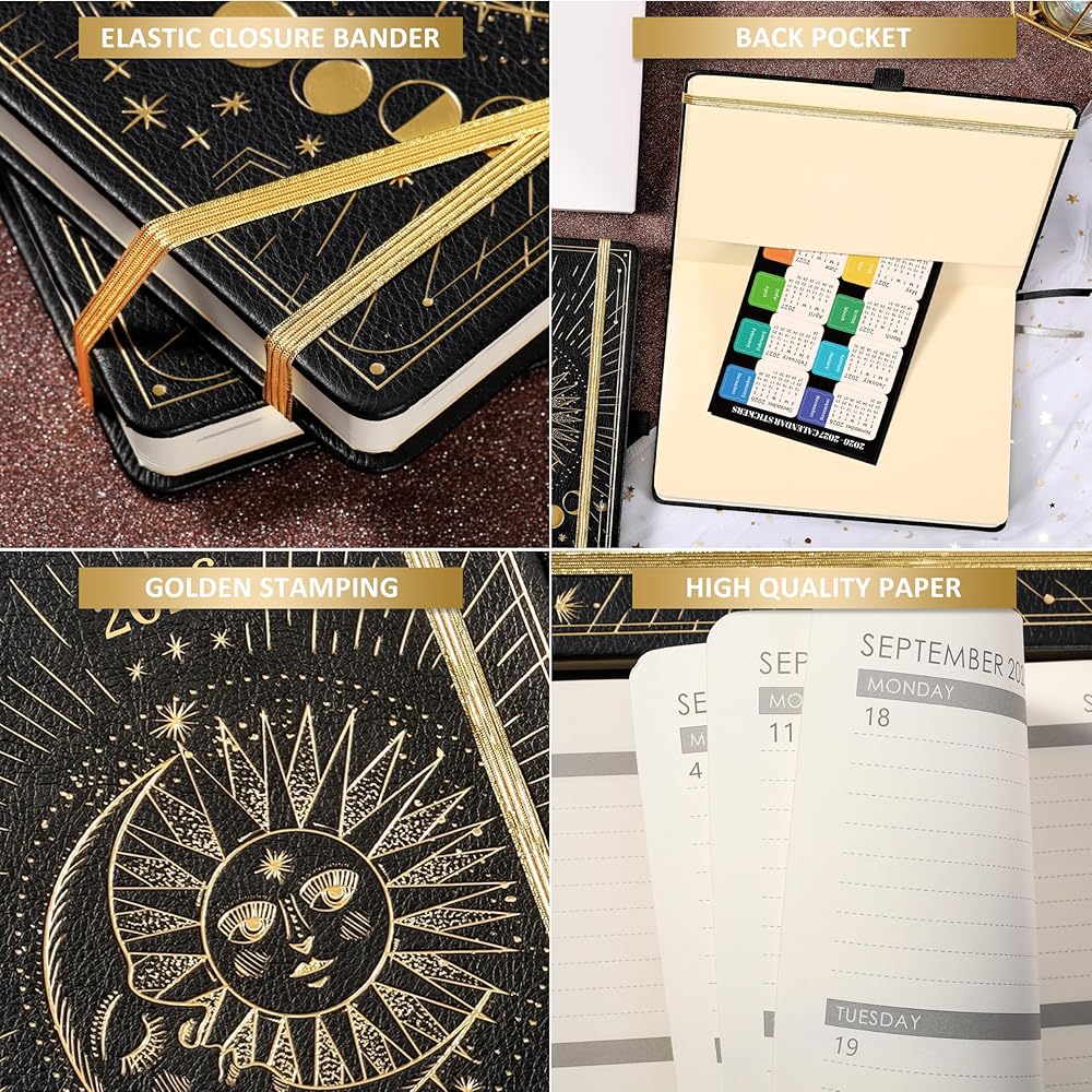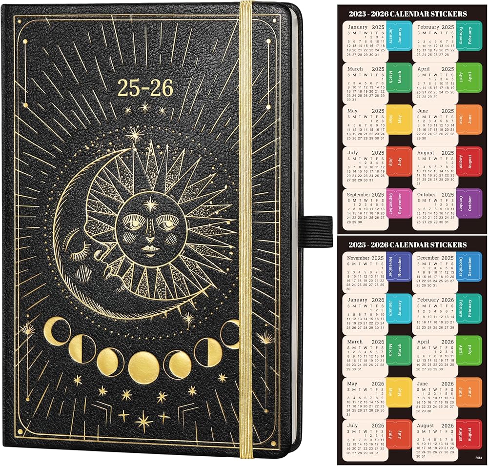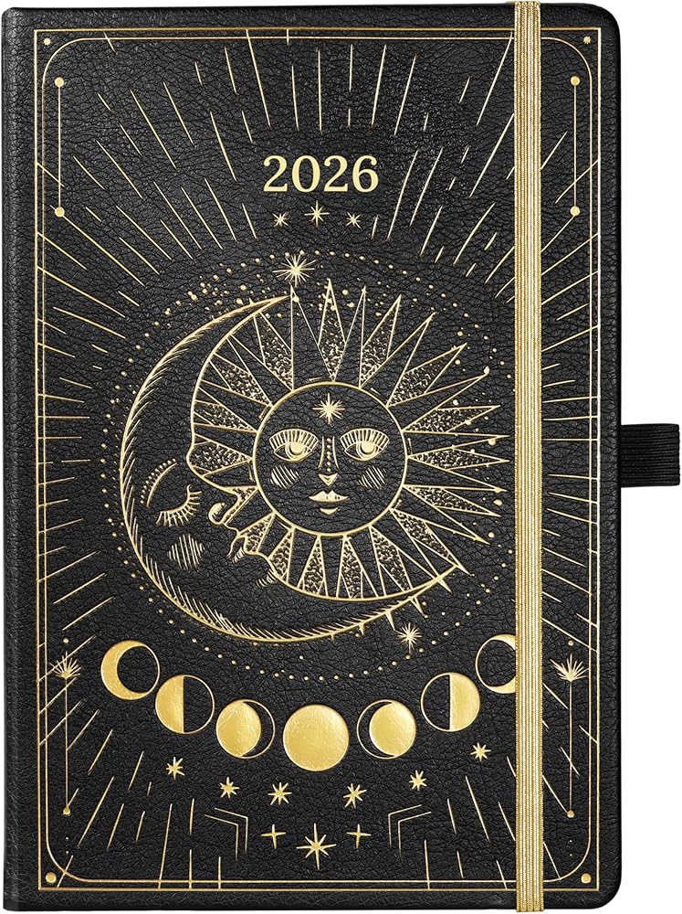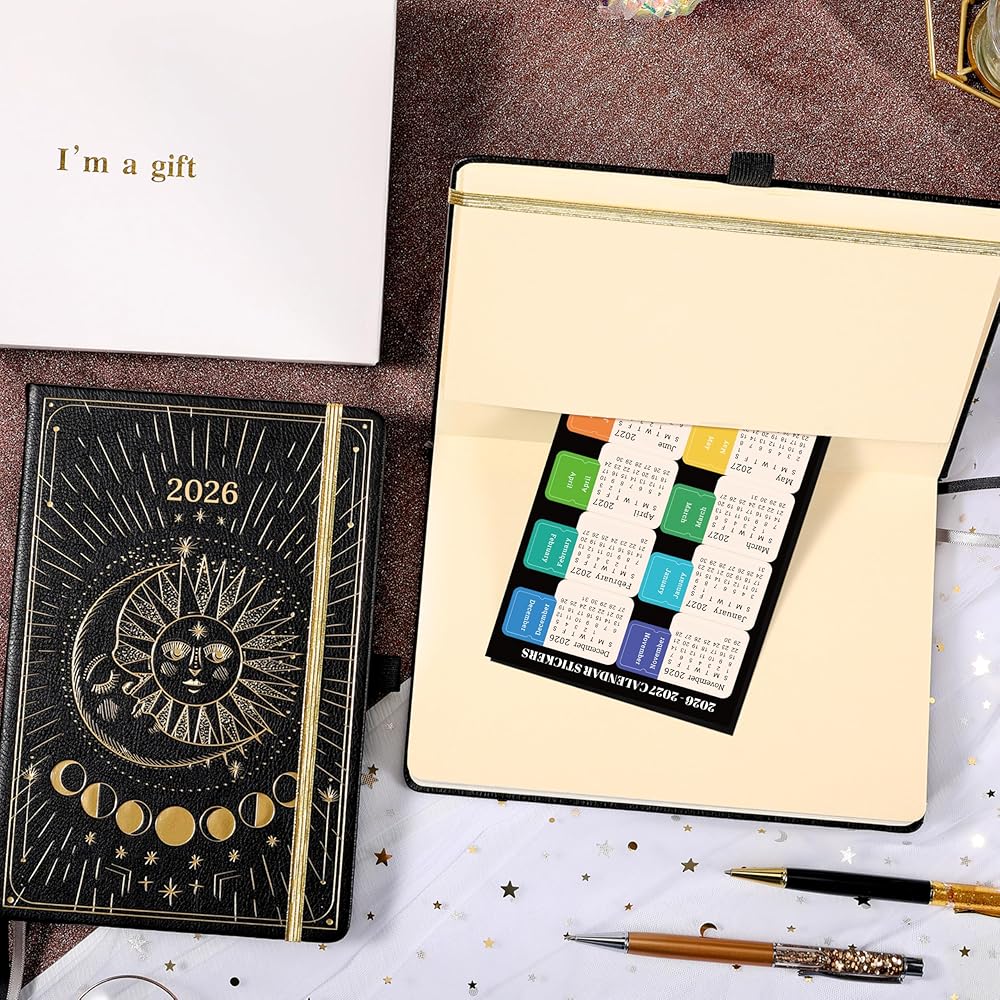 2026 Planner - Planner 2026, Jan 2026 - Dec 2026, 5.75" x 8.25", 2026 Weekly Monthly Planner, Faux Leather Planne-r 2026 with Back Pocket & 40 Notes Pages - The Sun and Moon