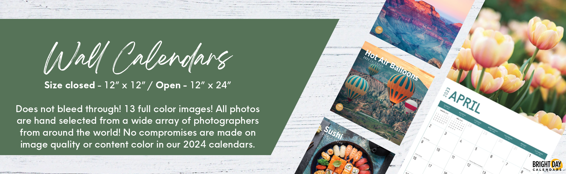 Designs: Bright Day offers planners and calendars for walls, desks, and refrigerators! Tons of Designs: Cats, kittens, dogs, and puppies of all breeds! Beautiful National parks, American cities and states, horses, wild life, nature photography and many more!