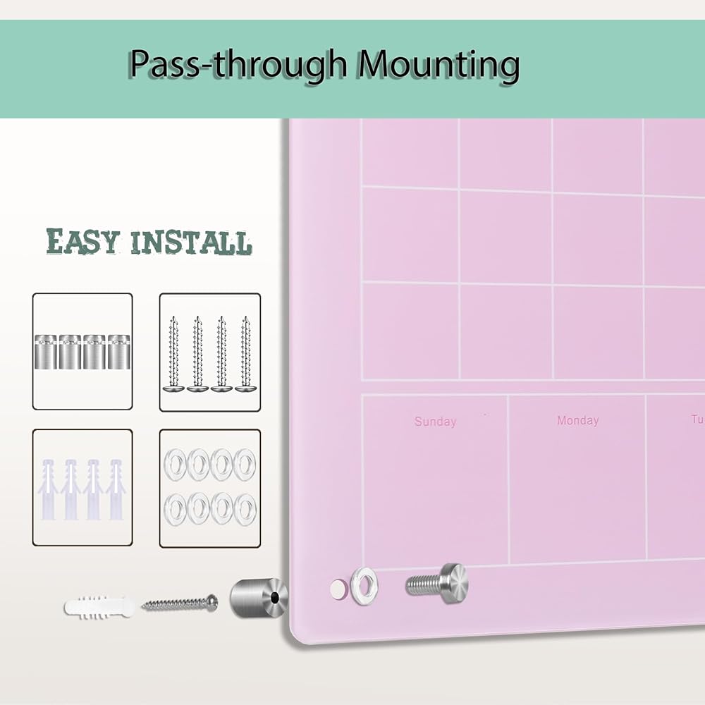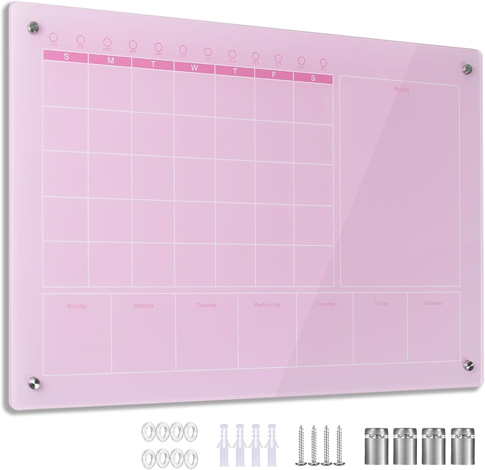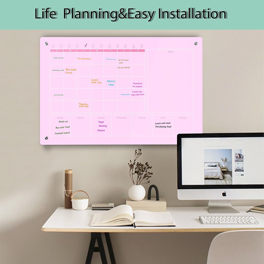 [Premium Quality] Acrylic wall calendar is 24"X16" in size and is made of high-quality transparent acrylic with a thickness of 1/5''. It is strong and durable and comes with 5 pairs of metal mounting accessories ( markers not included)