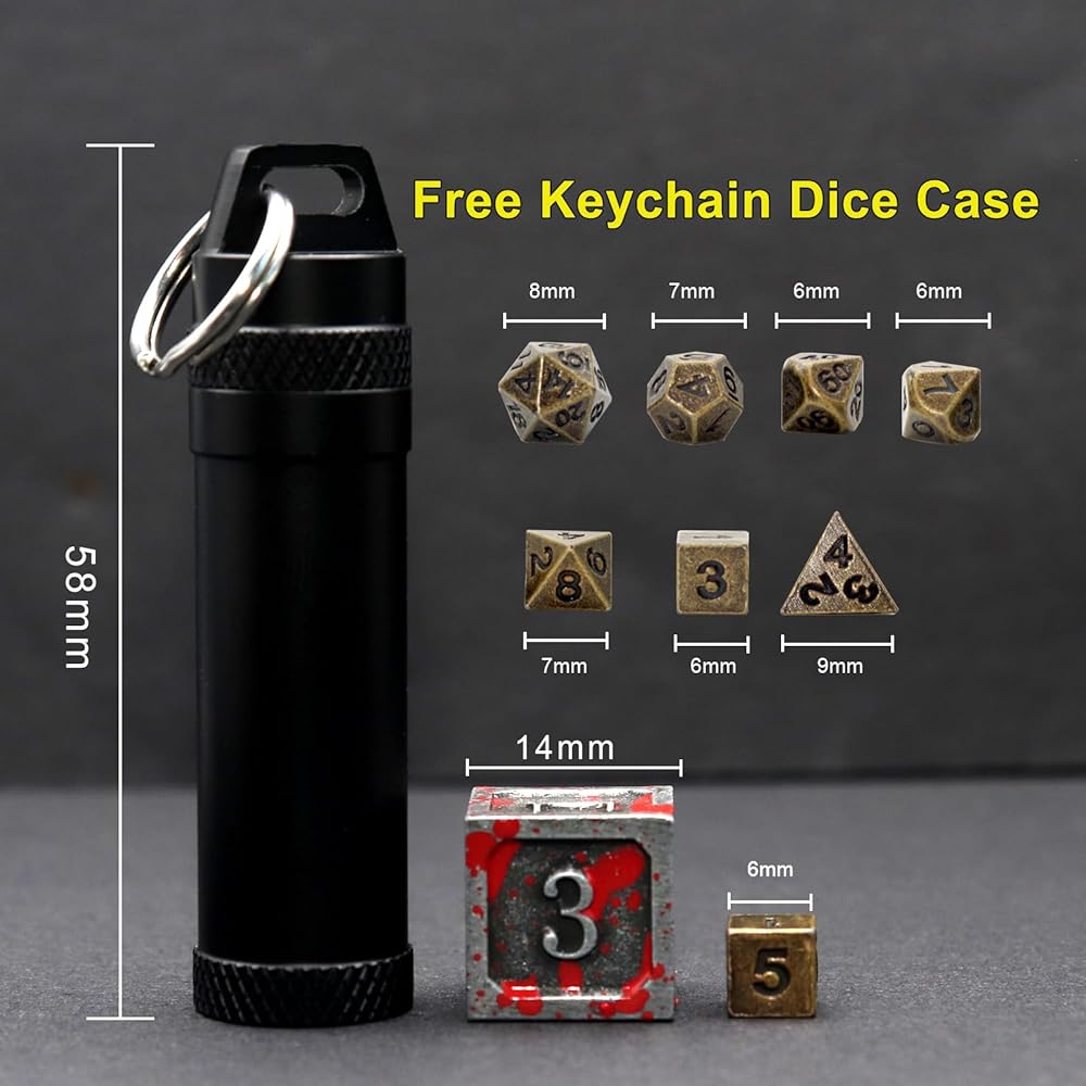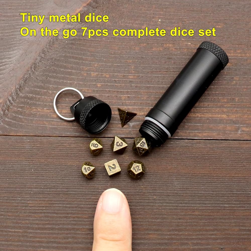 【Portable Keychain Fob Dice】: As avid dice rollers, we want the dice safe too. So we designed a metal case holding these small metal dice. The metal dice can now be carried with your keychain to any where safe and sound!