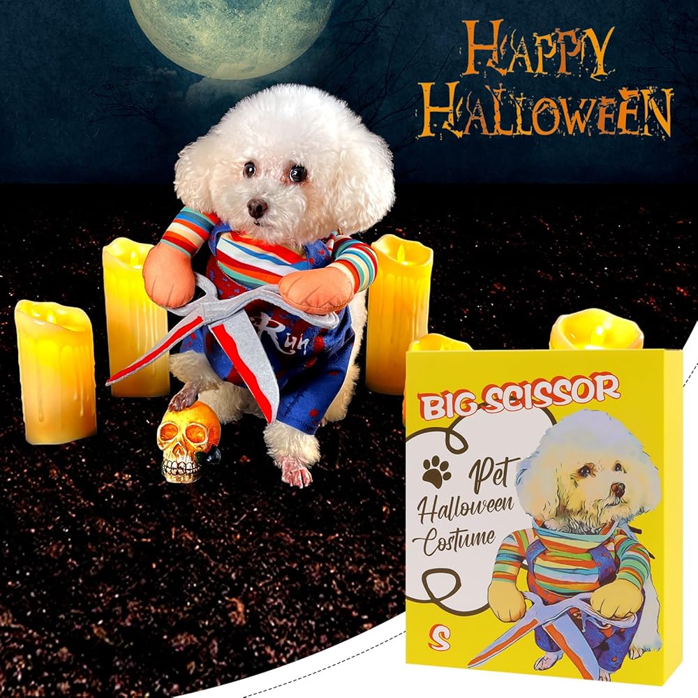NACOCO Dog Halloween Scissors Style Doll Costume Pet Christmas Cosplay Adjustable Doll Funny Special Clothes Puppy Party Clothes for Small Dogs Cats (Small)