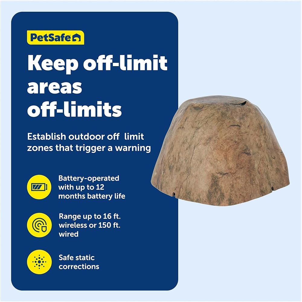 PetSafe Pawz Away Extra Outdoor Pet Barrier Transmitter - Adds 16 ft Wireless or 150 ft Wired Range - Natural Boulder Design for Discrete Garden Setup - Battery-Operated