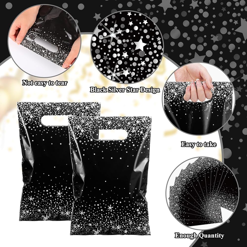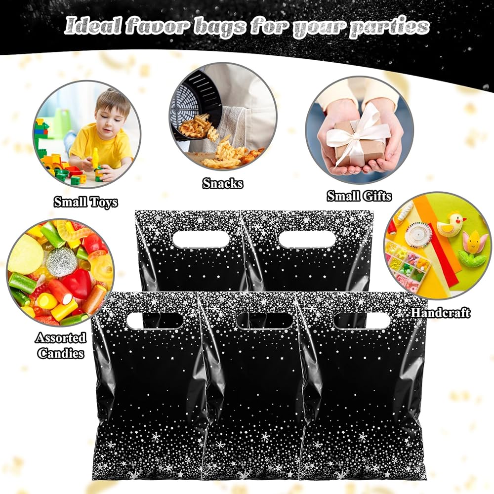 Elegant and Classic Design: our black plastic bags are designed with a gold star dot pattern on a black background, which can add a pleasant party atmosphere, attract the attention of both children and adults, cater to the interests and tastes of children, it can hold a lot of small things, such as candies, small desserts