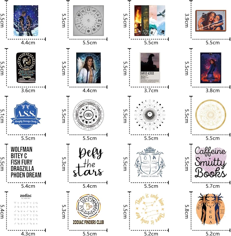 124Pcs Zodiac Academy Stickers Pack,Cute Cartoon Aesthetics Vinyl Waterproof Decals for Water Bottle, Laptop, Phone, Skateboard, Journaling for Kids Teens Adults for Party Supply Decor Favor
