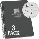 The Gray 4.625" x 7” side spiral notebook is fully prepared for any challenge Mother Nature throws at it. This book comes in a compact but comfortable size for taking plenty of notes, and our Rite in the Rain All-Weather Paper can handle any weather encounter in the field. Impact-resistant Wire-O binding won't lose its shape in your back pocket and a Polydura cover defends your notes from scratches and stains. The notebook comes equipped with 64 pages / 32 sheets. The non-glare gray paper is legible in bright sunlight. The Universal page pattern is printed on the sheets in gray ink on gray 32# Rite in the Rain paper. Rite in the Rain All-Weather Writing Products have been made in Tacoma Washington, USA since 1916. Recycle Rite in the Rain Paper with standard papers. Recycle the entire notebook using most curbside programs (paper, plastic, & metal). Simply separate the Wire-O binding from the cover prior to recycling for easier processing.