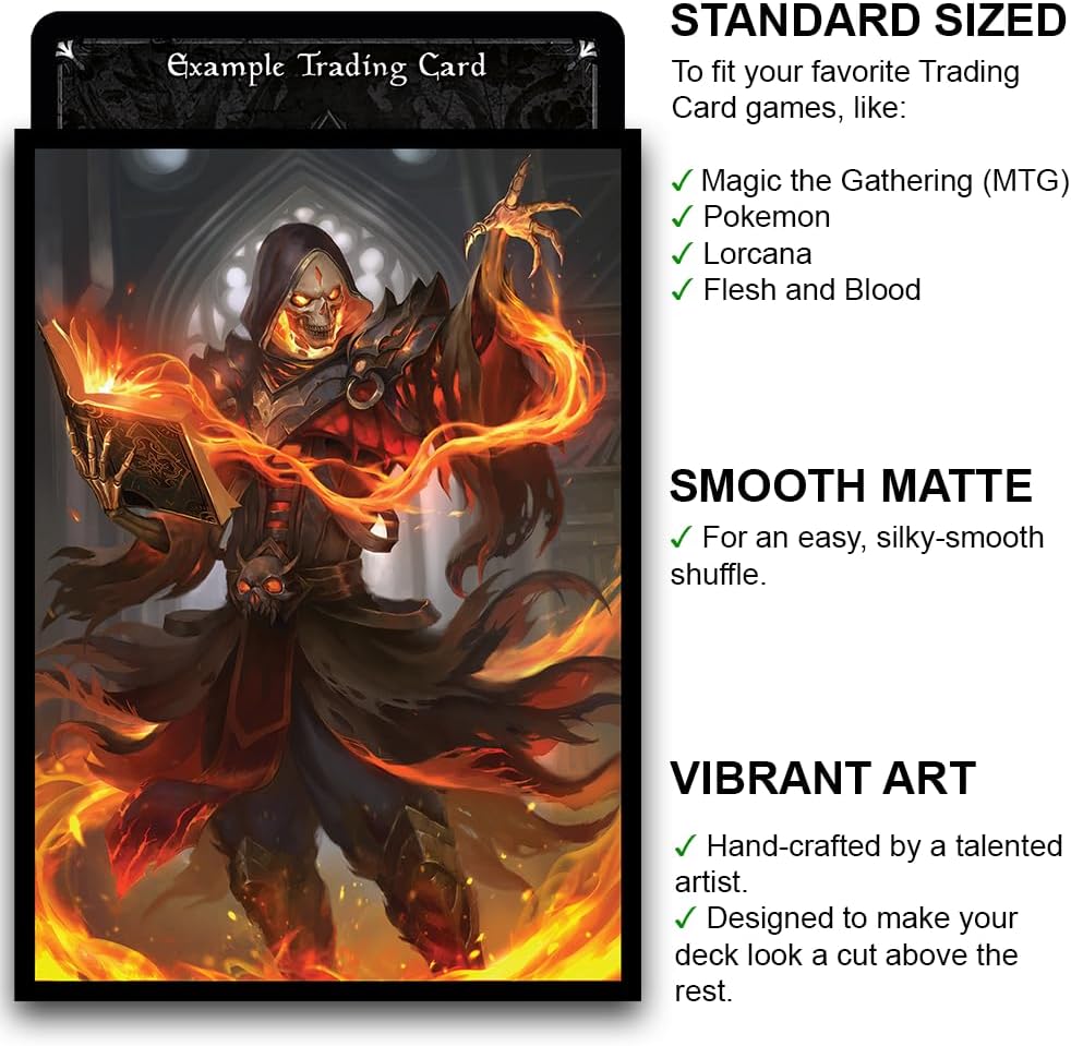 Fantasy North - Cinderbones - The Risen Flame - 100 Smooth Matte TCG Trading Card Sleeves - Fits Magic MTG Commander Pokemon and Other Card Games - Playing Card Sleeves