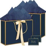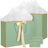 1. The package contains 2 large white gift bags, each with 2 sheets of tissue paper and 1 greeting card, suitable size, sturdy material, easy for gift packaging.