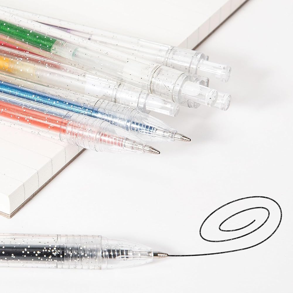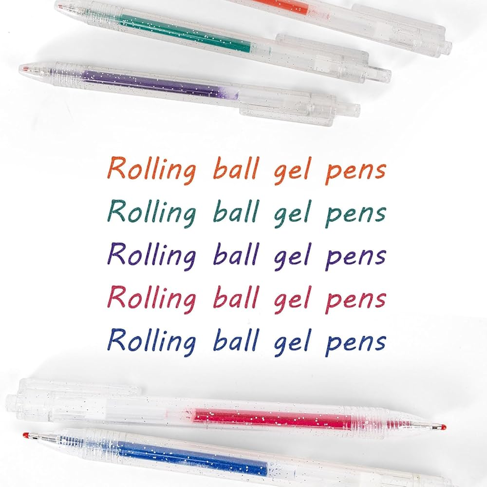 VIBRANT COLORS: Glitter retractable gel pen set includes 18 sparkle, non-repetitive colors for all your needs. A rich selection of colors and ample ink content allows you to unleash your artistic creativity.