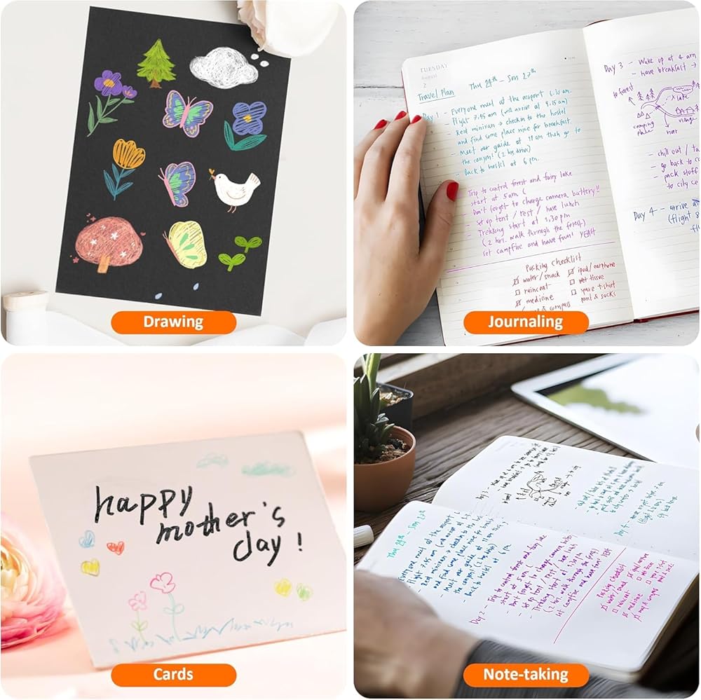 MULTI USAGE: Glitter pen set for varieties art works such as painting, drawing scrapbooking, journaling, adult coloring books, card making, greeting cards, sketching, writing notes, or any other artistic creations.