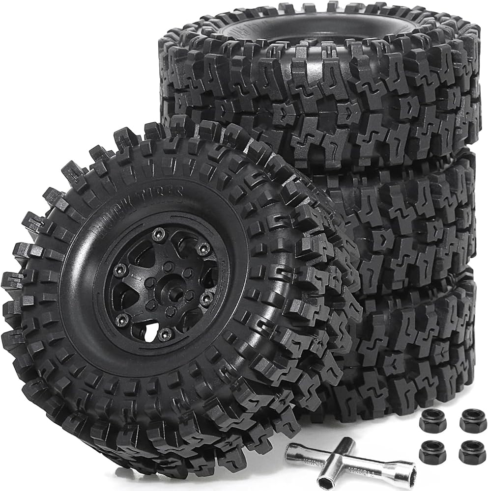 🙂【Size specifications】:1.9 beadlock wheels and tires.The wheel hub height is 2.09 inches, the width is 1.1 inches, the tire height is 4.72 inches, and the width is 2.17 inches Specifically designed for 1/10 scale RC vehicles, they provide exceptional performance and durability on any terrain.