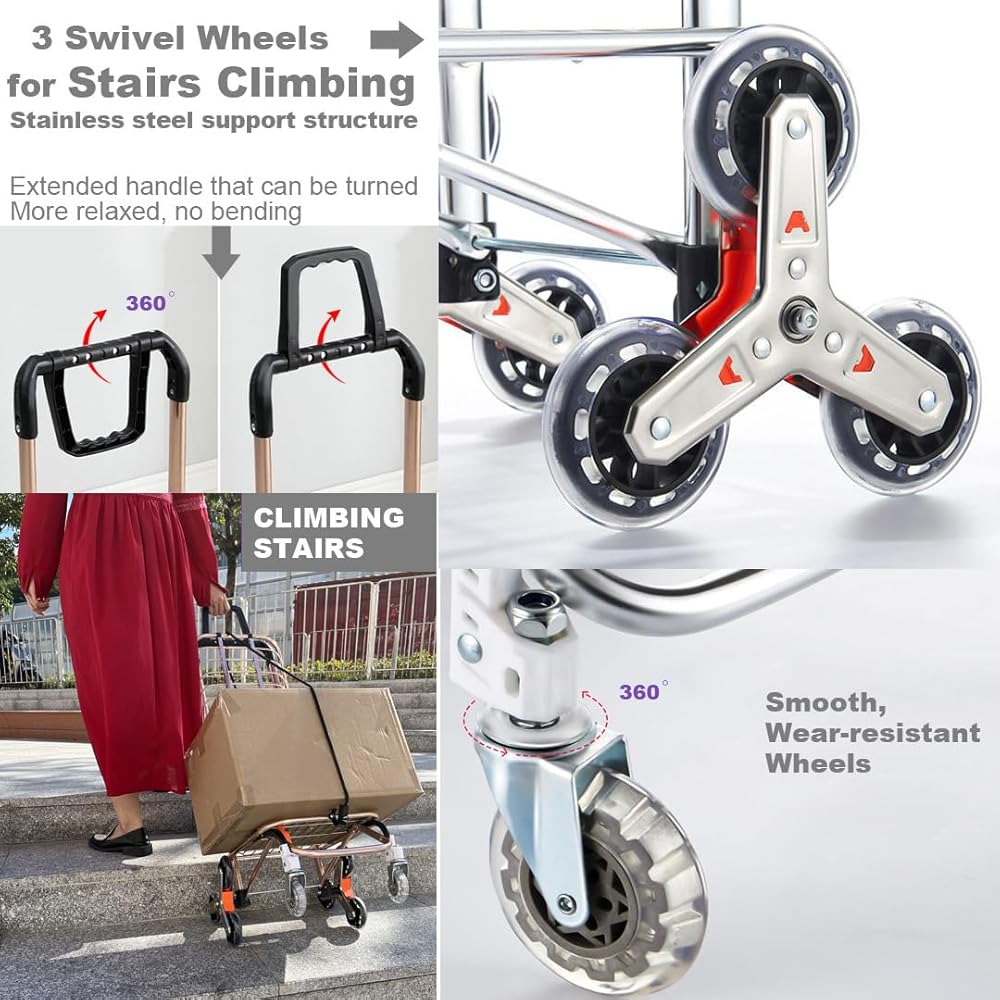 ★. Climbing Stairs Utility Cart: The groceries shopping cart is equipped with 3 swivel wheels which is designed specifically for stairs climbing. Stainless steel structure is strong and durable.Flexible and wear-resistant wheels. It's no longer so hard to walk up and down the stairs after shopping. Especially old people.