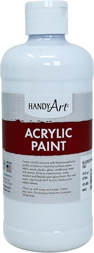 Handy Art Student Acrylic Paint offers pigment rich colors that are permanent and water resistant when dry. These exceptional quality acrylics are ideal for use on most surfaces: paper, fabric, wood, plastic, glass, cardboard, metal and canvas. Paint dries to a flexible semi-gloss finish. Create most any art, craft and school project with these brilliant colors. Paint is non-toxic, water based and gluten-free. Cleans up with soap and water. Made in the USA and Certified AP Non-Toxic.