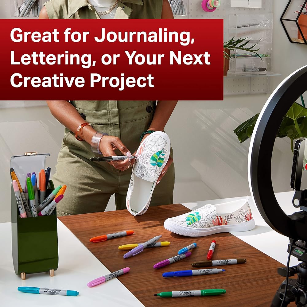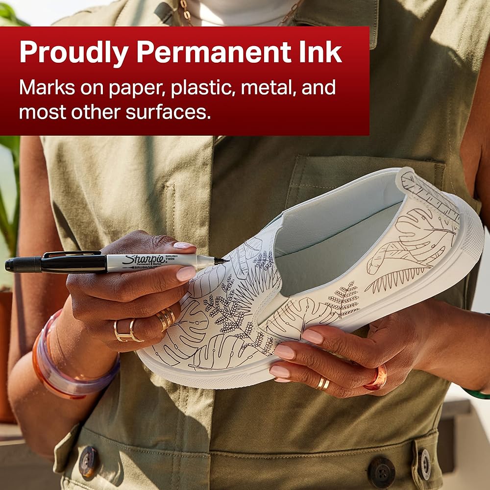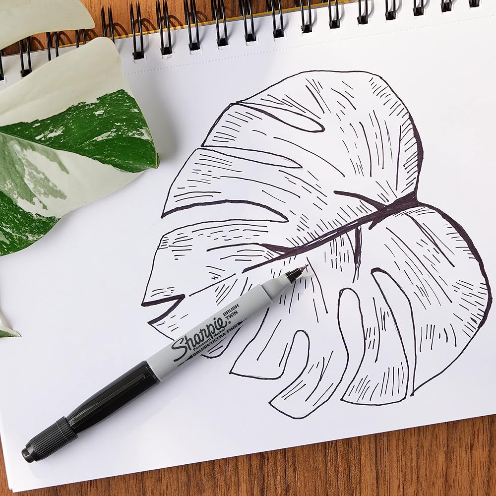 From broad strokes to fine details, Sharpie Brush Twin Permanent Markers do it all! On one end, they're brush markers with a flexible brush tip for lines that vary from thick to thin—all in one stroke! On the other end, they're an ultra fine tip permanent marker that provides precise control. These dual-tip markers are perfect for everyday marking, lettering, and details on paper, plastic, metal, and most other surfaces. Like all Sharpie permanent markers, the intensely brilliant colors create eye-popping, vibrant impressions. With this versatility, Sharpie Brush Twin Permanent Markers let you transform ordinary surfaces into creative statements!
