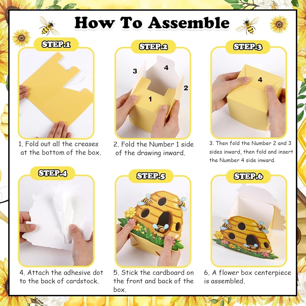 What you will receive: You will get 12pcs strawberry flower centerpiece boxes to decorate your party. Each flower centerpiece box is made up of two parts: a square box and 2pcs strawberry printed cardstock. You need to assemble the box according to the crease and attach the cardstock to the box with adhesive dot