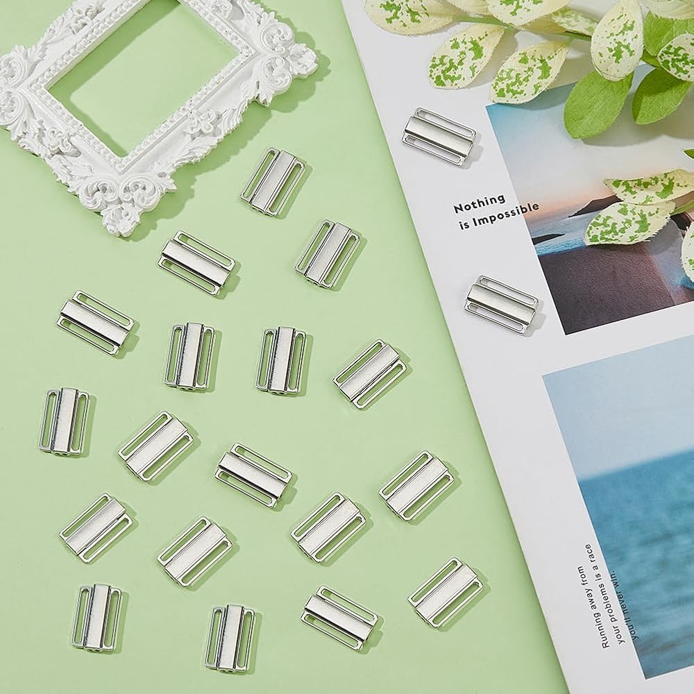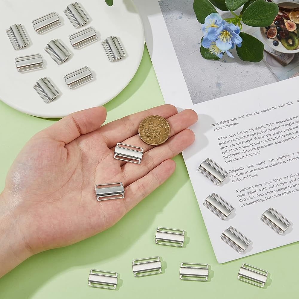 SUPERFINDINGS 20Pcs Alloy Bikini Clips, Bra Clasp Replacement Part, Lingerie Front Closure, Platinum