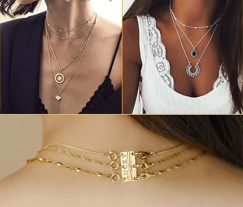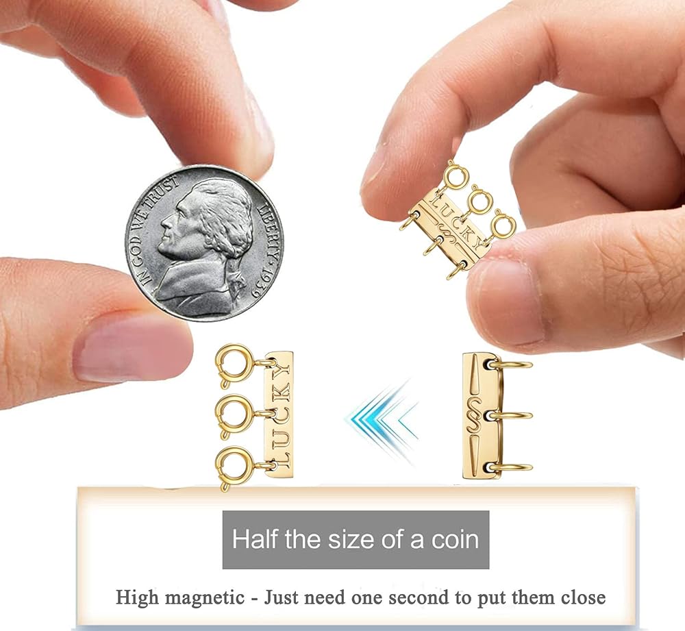 【Easily Use & More Secure】:Just attach your favorite pieces of jewelry to our necklace layering clasp and stick the two magnetic sides together then you're done! Quite easy! Our magnetic clasps is designed to hold up to 4 pounds in order to guarantee your jewelry safety.