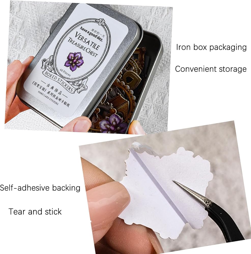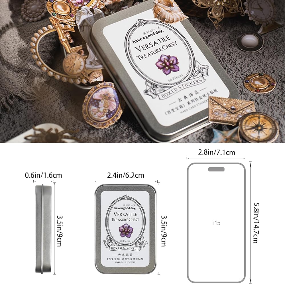 Package: These vintage journaling scrapbook sticker set in different series,sets come in 2 boxes, each box containing 60pcs, for a total of 120pcs,the scrapbooking stickers are packaged in a reusable beautiful iron box. This set of hard card stickers showcases rich colors and highly detailed patterns,the pattern on each sticker is different,can meet your all DIY decoration needs.