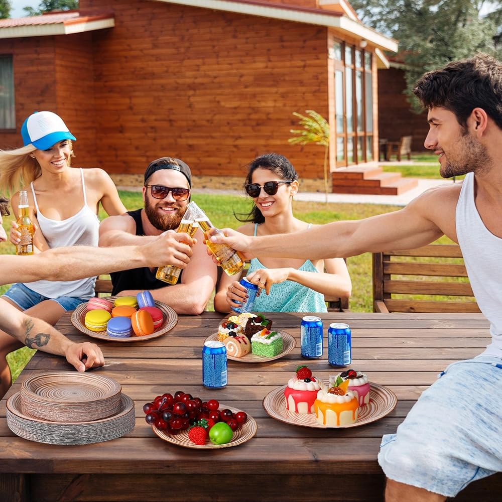 Themed Parties Accessories: the party paper plates add a creative touch to your party, making it more memorable and enjoyable for guests, proper accessories for wood grain theme parties, baby showers, gatherings, wood theme events and more, people who are curious for space