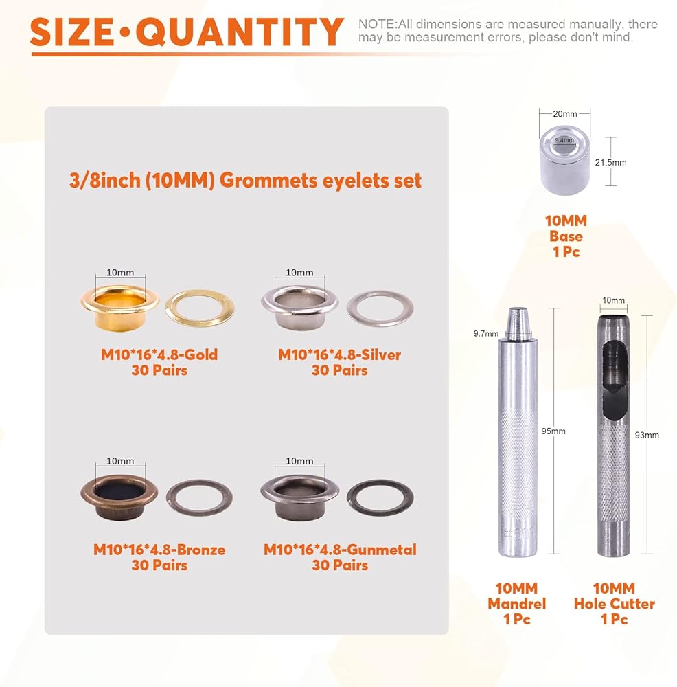 ➤Rustark Thickened Grommet Eyelets Assortment Kit with 3Pcs Setting Install Tool, Gold Silver Black Bronze Metal Eyelet Grommet Set for Leather, Canvas, Tarp, DIY Craft Projects