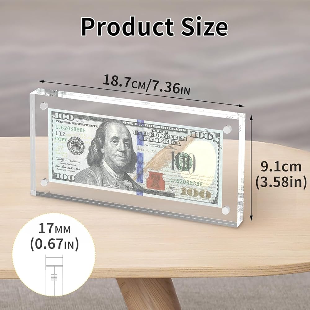 Our double-sided transparent acrylic money holder set offers exceptional transparency and clarity. Ideal for storing banknotes and other collectibles, it adds a touch of elegance to your collection.