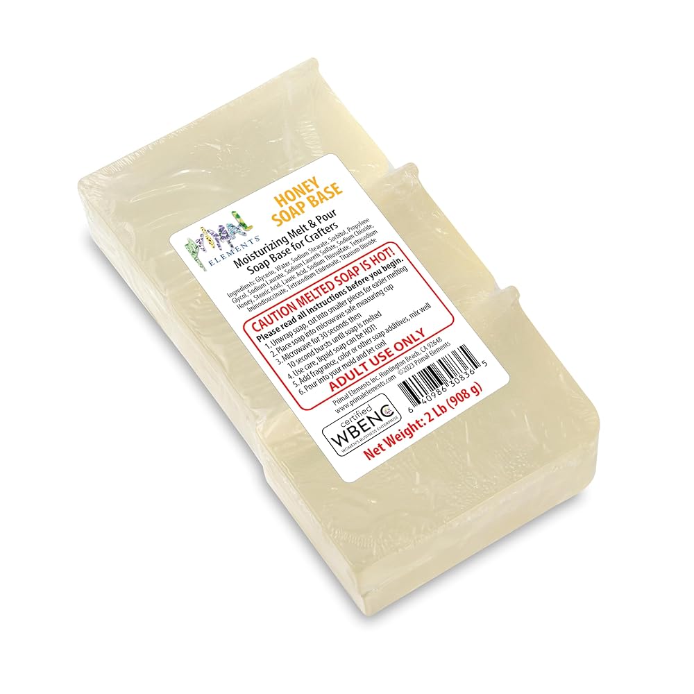 Solid Soap Base that can be used to mix and create various unique soaps. Simply cut into chunks and melt to add various designs or scents to the mix. Wow your friends with unique soap bars that can be used on any occasion. Primal Elements has an array of white, clear, opaque, and colored soap bases. Primal Elements soap base is easily, cut, melted, and poured for an exciting DIY fun time, creating something you'll always be using. Coming in popular skin nourishing and unscented shea butter, coconut oil, honey, aloe, argan oil, and more, there are many soap bases to play with and try in your next soap making project. Paraben free and sulfate free so there is no worry about using our products. Soap bases turn into great home soaps for the hand and body. Also offering soap making kits if this is your first time making soap at home. Soap perfect for bath, body, and mind is soon to come. Soap base is tested to be a non-skin irritant according to the Zein test. Never tested on animals.