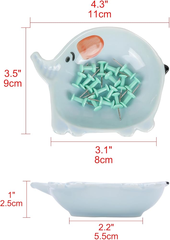Size: Blue paper clip holder for desk cute elephant width about 3.5" (9cm), 1" (2.5cm) height.