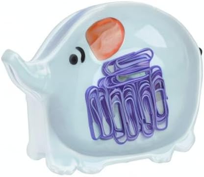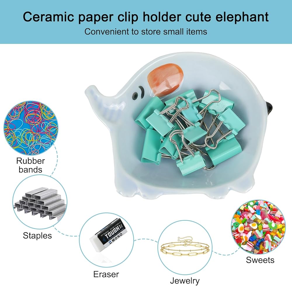 Blue ceramic paper clip dispenser for desk cute elephant.