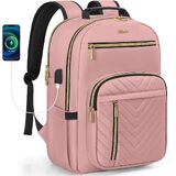 WELIDAY Laptop Backpack for Women, Work Travel Computer Bags, Quilted Casual Daypack with USB Port, Waterproof Computer Backpack Fit 15.6 Inch Laptop (Black)
