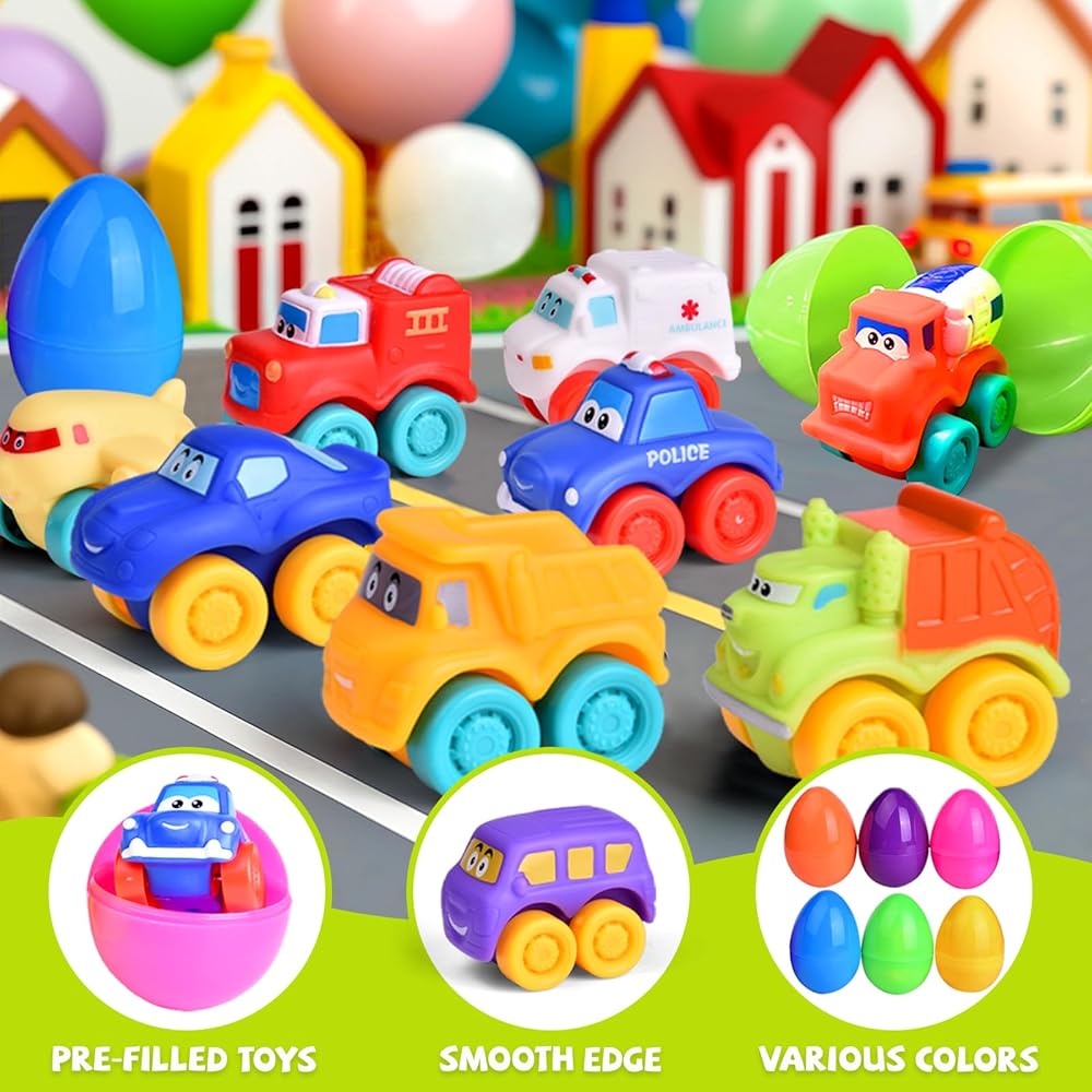 Perfect for Boys and Girls Easter Gift: Whether a car-loving boy or a girl who enjoys imaginative play, these Easter eggs are a fantastic gift. The toy cars are colorful, fun, and perfect for toddlers.