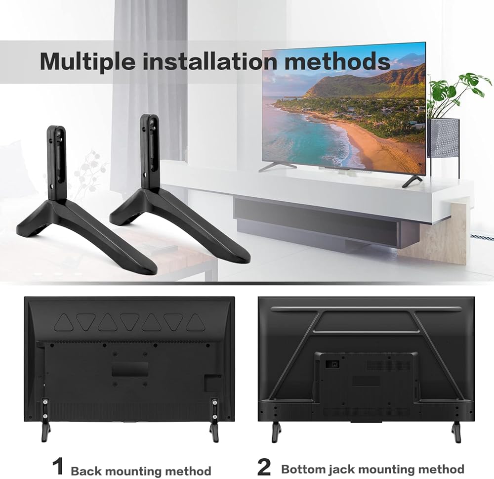 Universal TV Stand Base Replacement, Small Black TV Stand Mount, Portable TV Stand Legs TV Riser for Bedroom Living Room Corner, Compatible with Samsung Vizio LG Sony, Holes Distance 1.7-2.2 inch