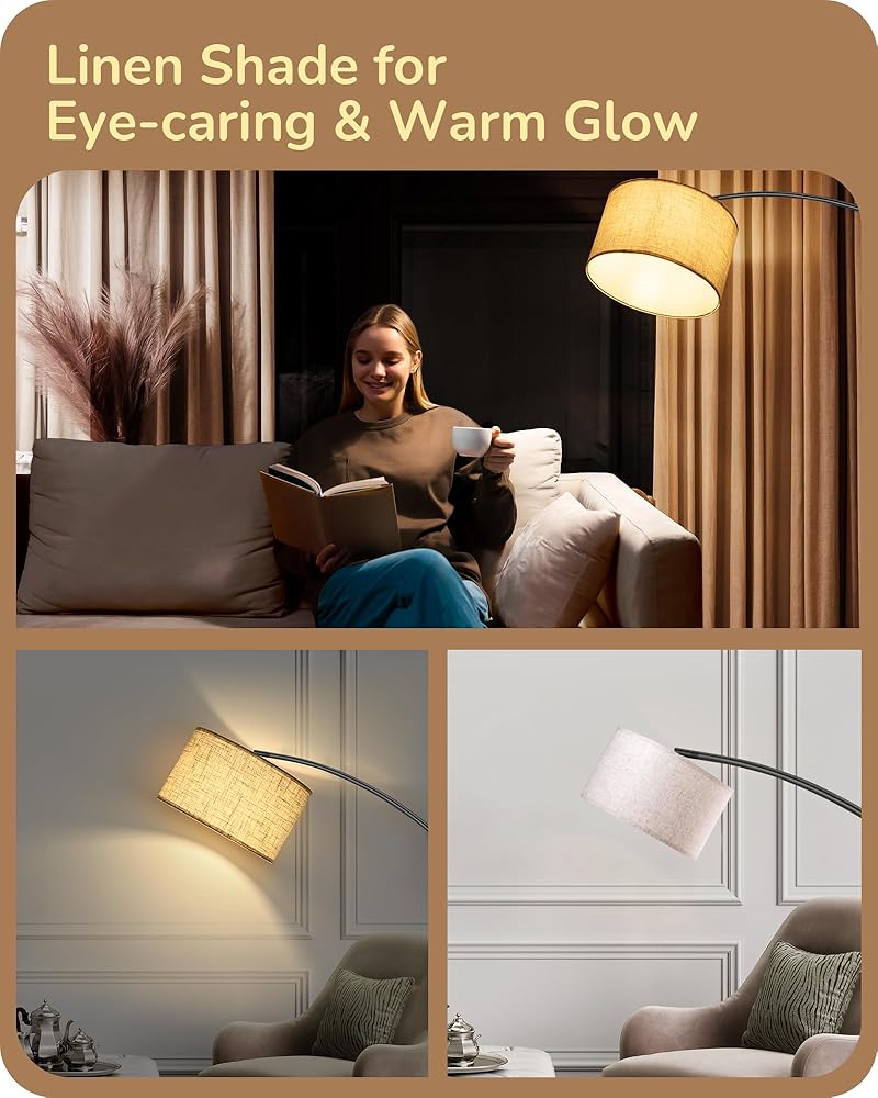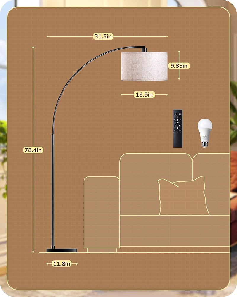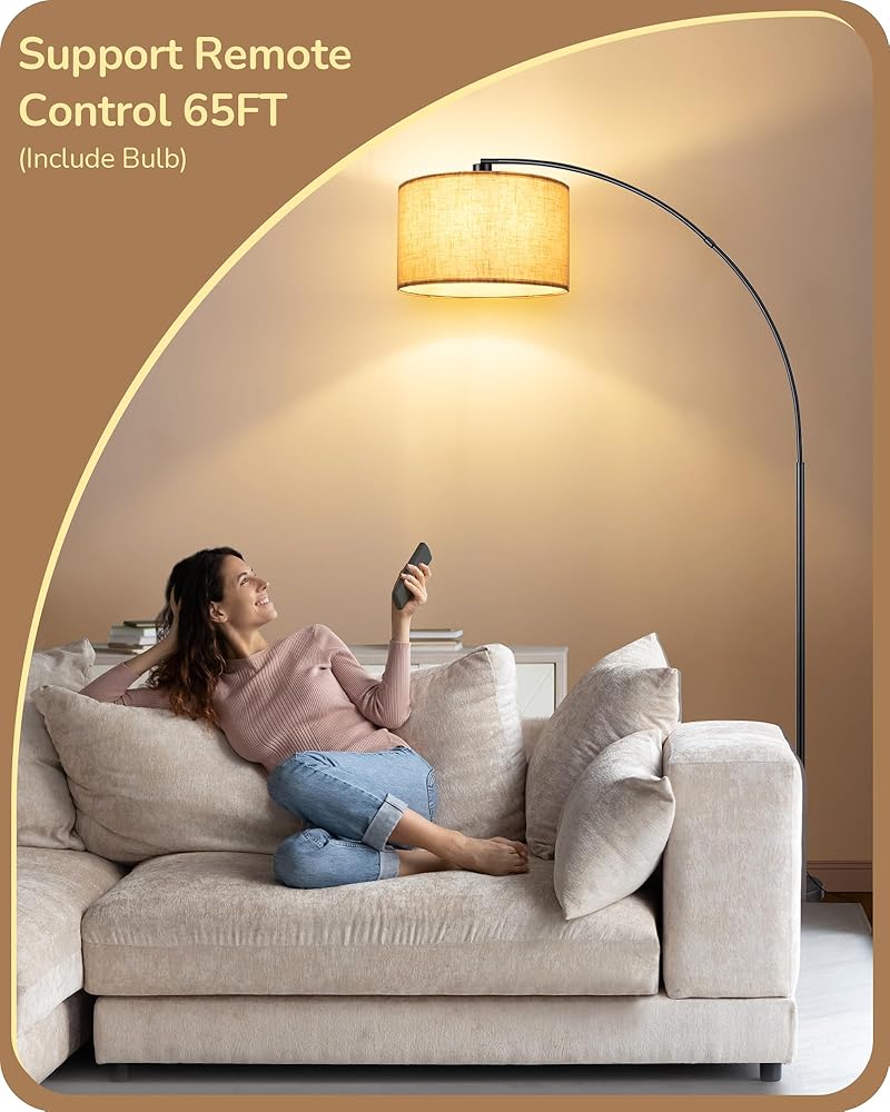 [Sturdy Base & Safety] Adopted with 11.8 inches diameter metal material and weighted base, this arc floor lamp is safe and stable, preventing it from tipping over, especially safe for kids and pets; the lamp's height and curvature are ideal choices whether it is placed next to the sofa or the dining table