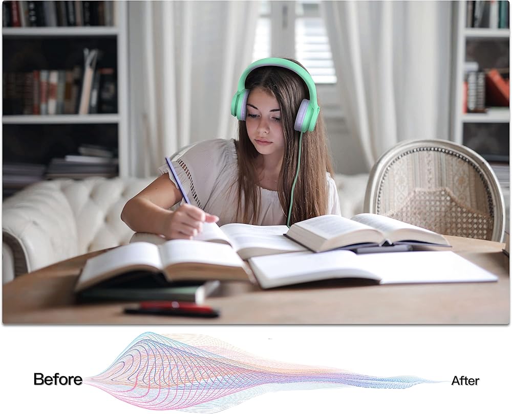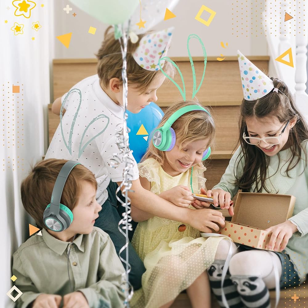 【85/94dB Safe Volume Control 】:Children's ears are sensitive to loud sounds and you don't want them turning the volume up and ruining their hearing! Therefore, this headphone is specially designed for children.The headphones limit the volume to 85dB for everyday use, and can also reach 94dB to ensure your child hears crystal clear sound in noisy environments like cars or airplanes
