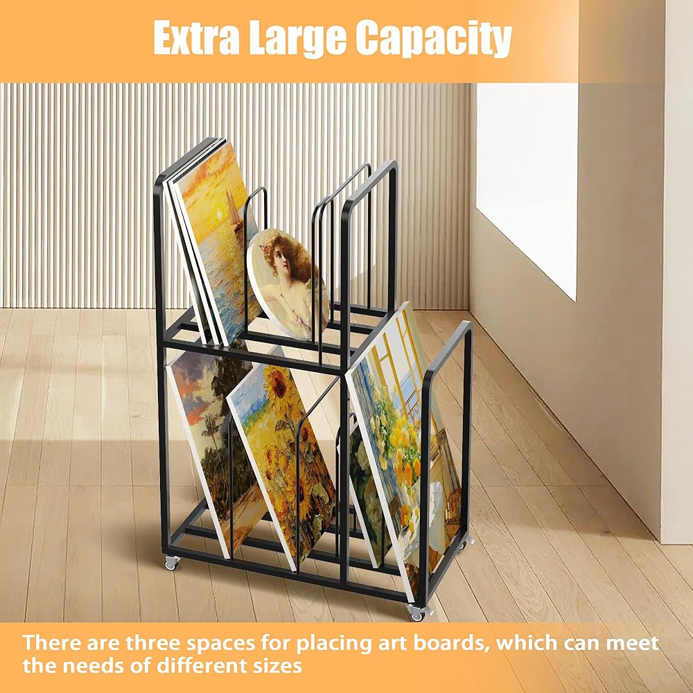 Wide Applicability: This art canvas storage rack is suitable for storing canvas boards, drawing boards, art collections and ect. Save space while making it convenient for you to categorize artworks
