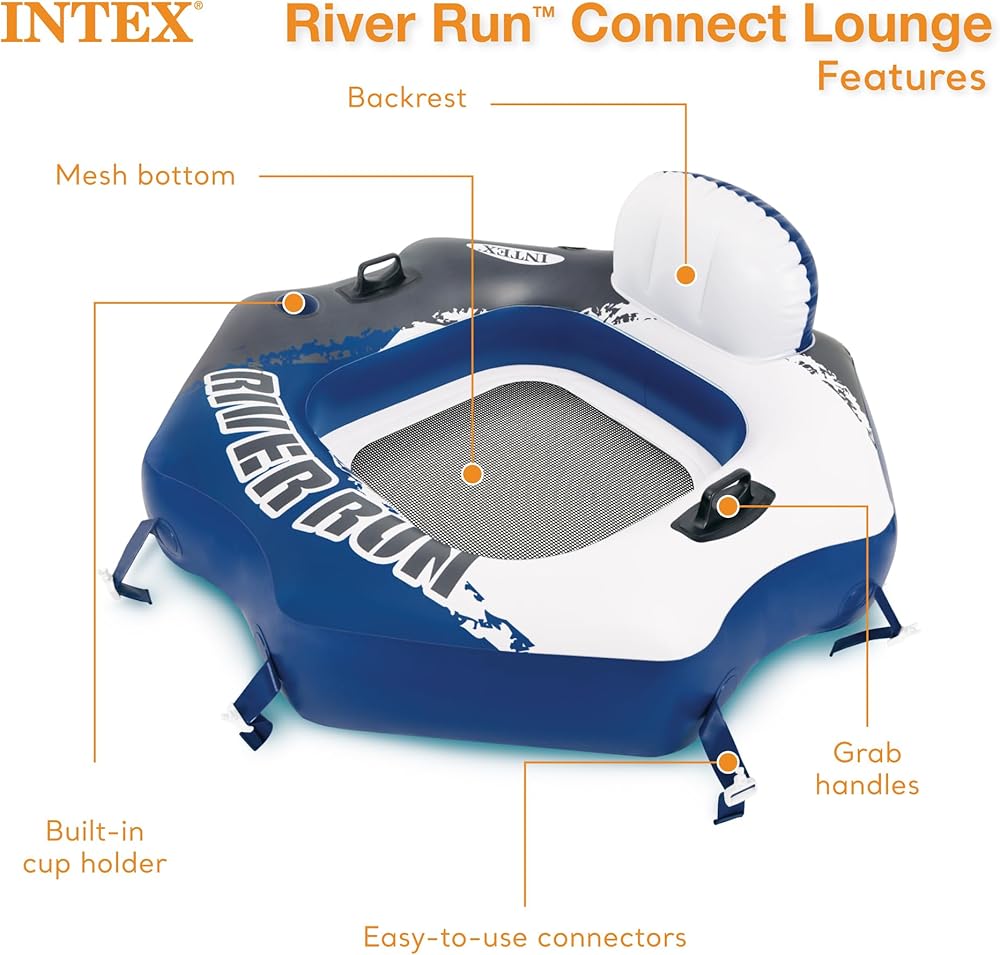 CONNECT WITH FRIENDS – Included with the tube are two easy-to-use connectors that allow you to connect with other INTEX floats, making it that much more fun to be out on the water