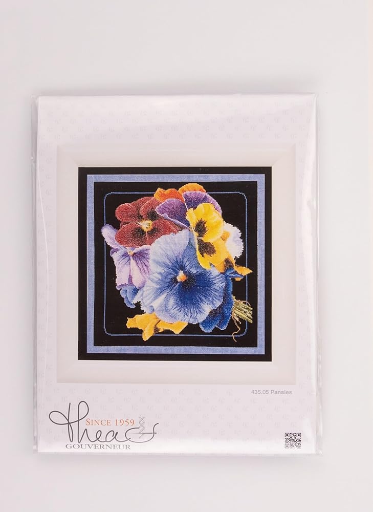 DESIGN: Nature-inspired designs are a highlight of the Thea Gouverneur cross stitch collection. This colorful counted cross stitch pattern features pansies
