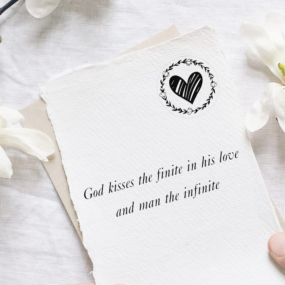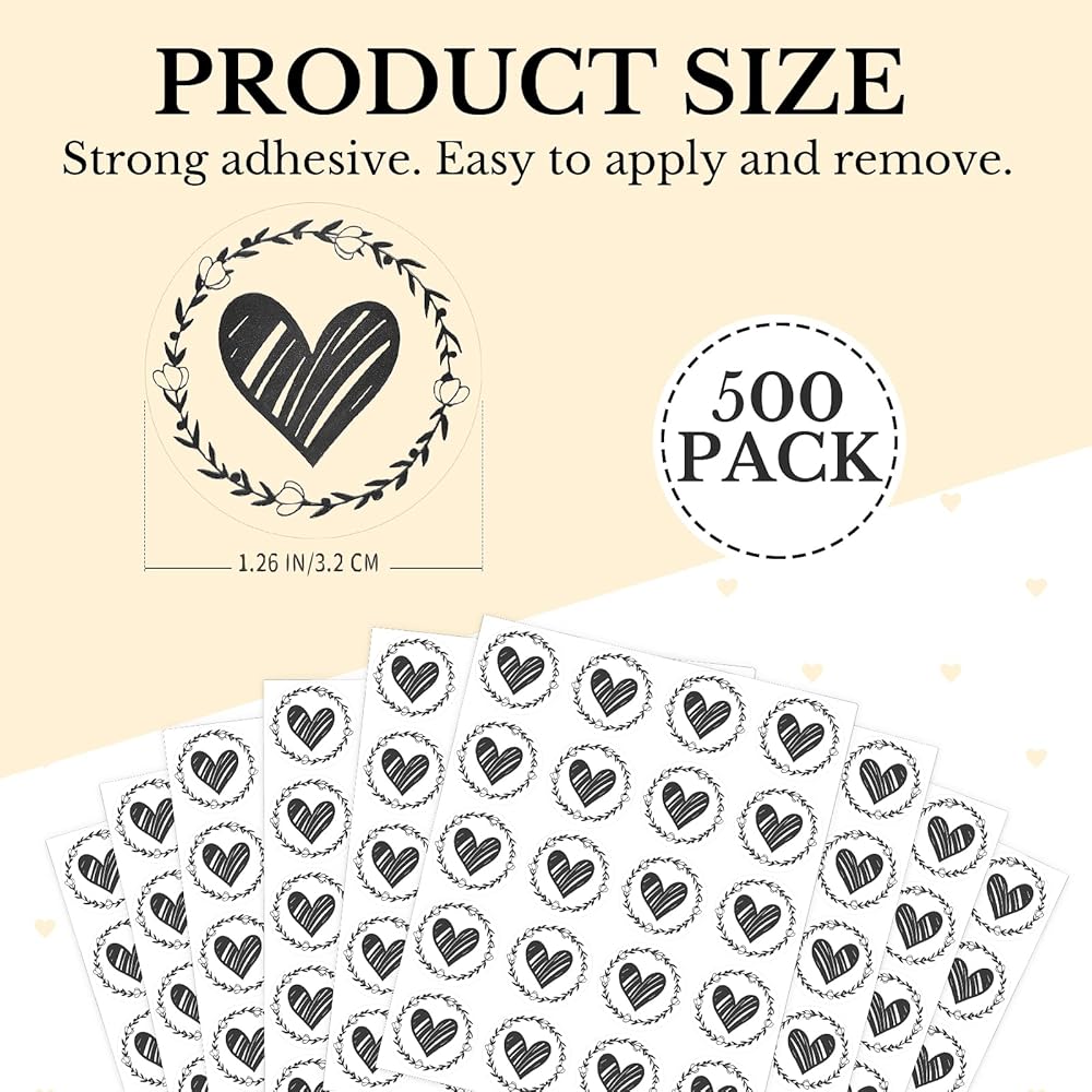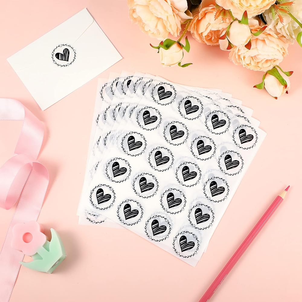 Zonon 500 Pieces Clear Heart Envelope Seals, Wedding Heart Stickers, Love Stickers 1.26 Inch Round Sealing Sticker for Wedding Invitation Card Bridal Shower Mother's Day Baptism Favor(Black)