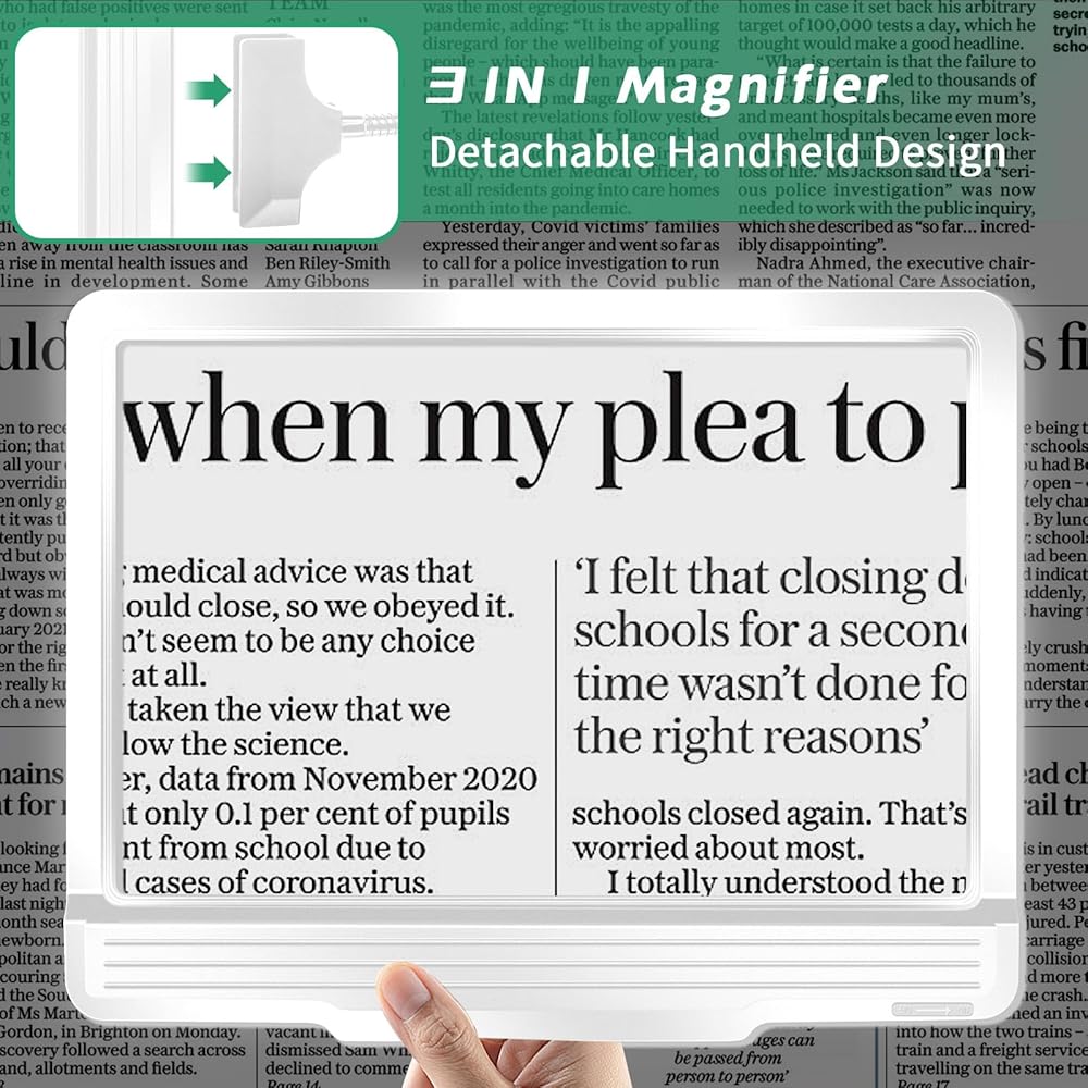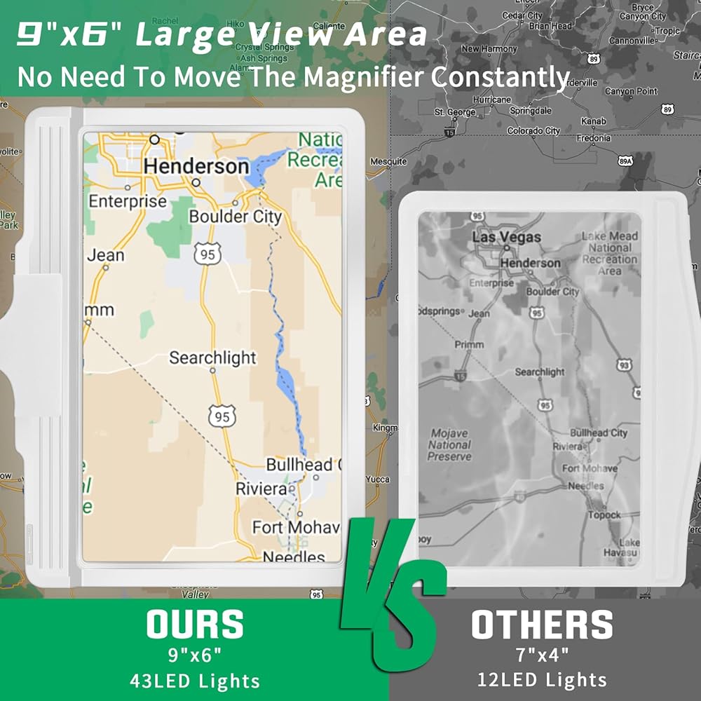 [Large Magnifying Glass for Reading] This large magnifying glass with light is 9 x 6 inches in size, providing you a larger view area without repeatedly moving the magnifying glass. 5X high-definition zoom-in 500% of the area without distortion, good for reading book