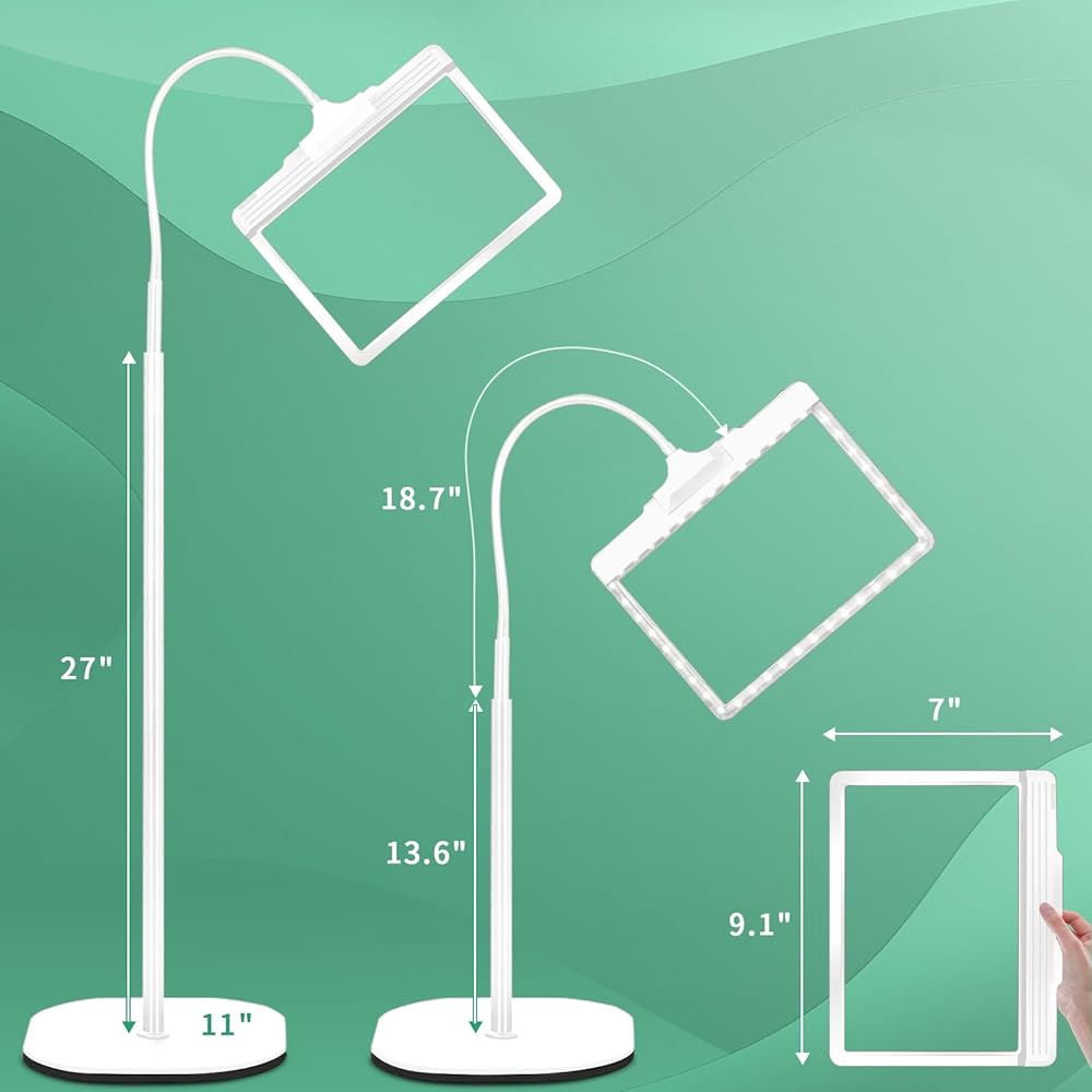 [2 IN 1 Magnifier] The adjustable gooseneck can free your hands, and the magnifier can be clip on the gooseneck of floor lamp base. You can adjust the angle and direction to fit your needs and will not feel tired even you use it for a long time. And you can detach the gooseneck to be a handheld magnifier