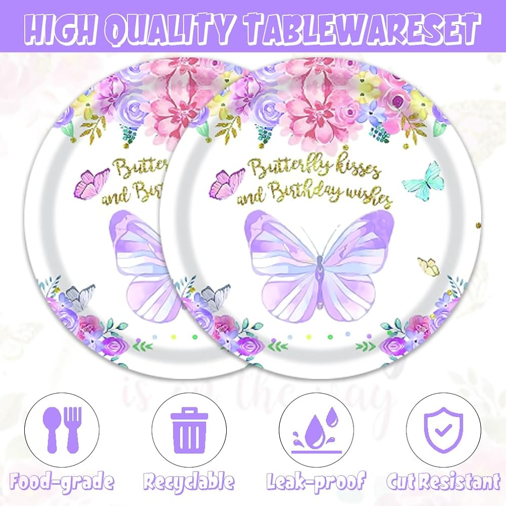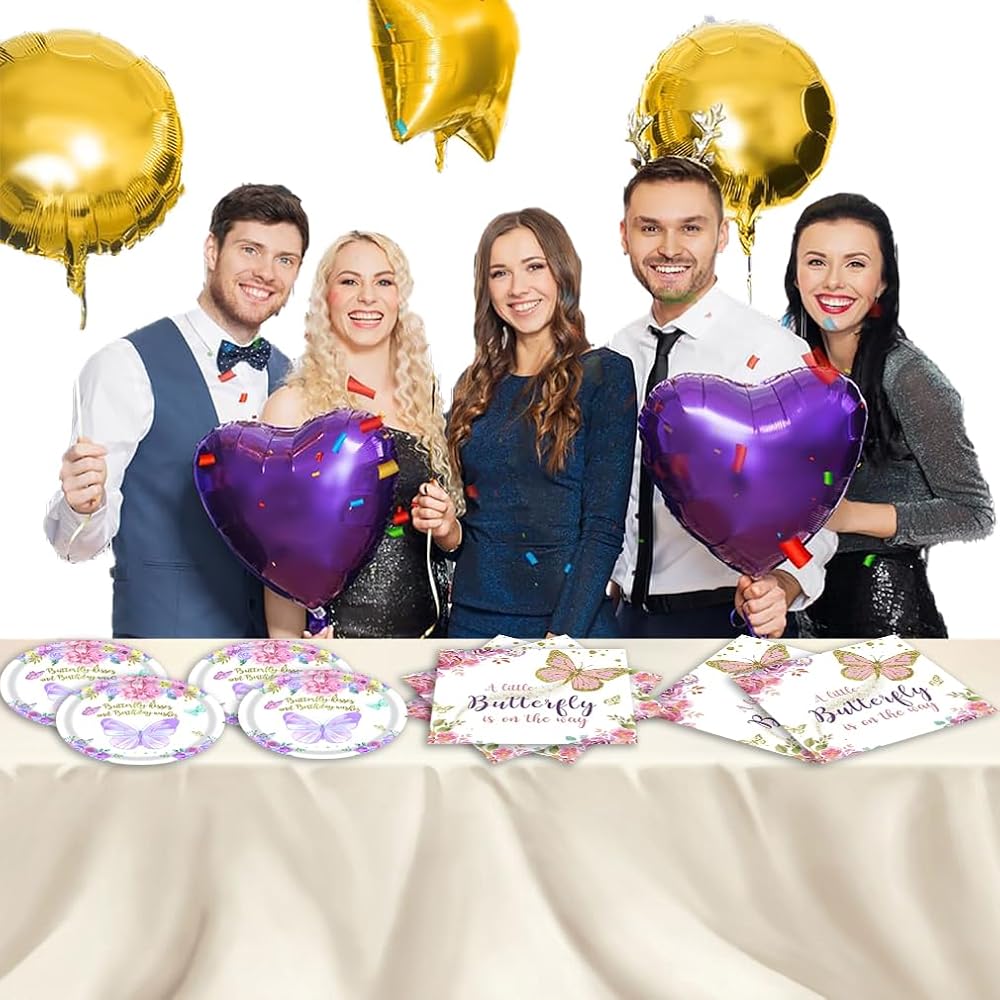 【Enchanted Butterfly Theme】Celebrate your little one's arrival with our magical butterfly theme! Our plates and napkins feature delicate pink and purple butterflies and flowers, creating a whimsical atmosphere for your baby shower. Picture your guests gathered around, surrounded by beauty and love.