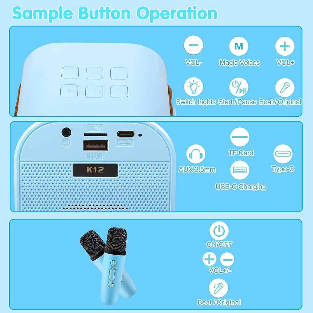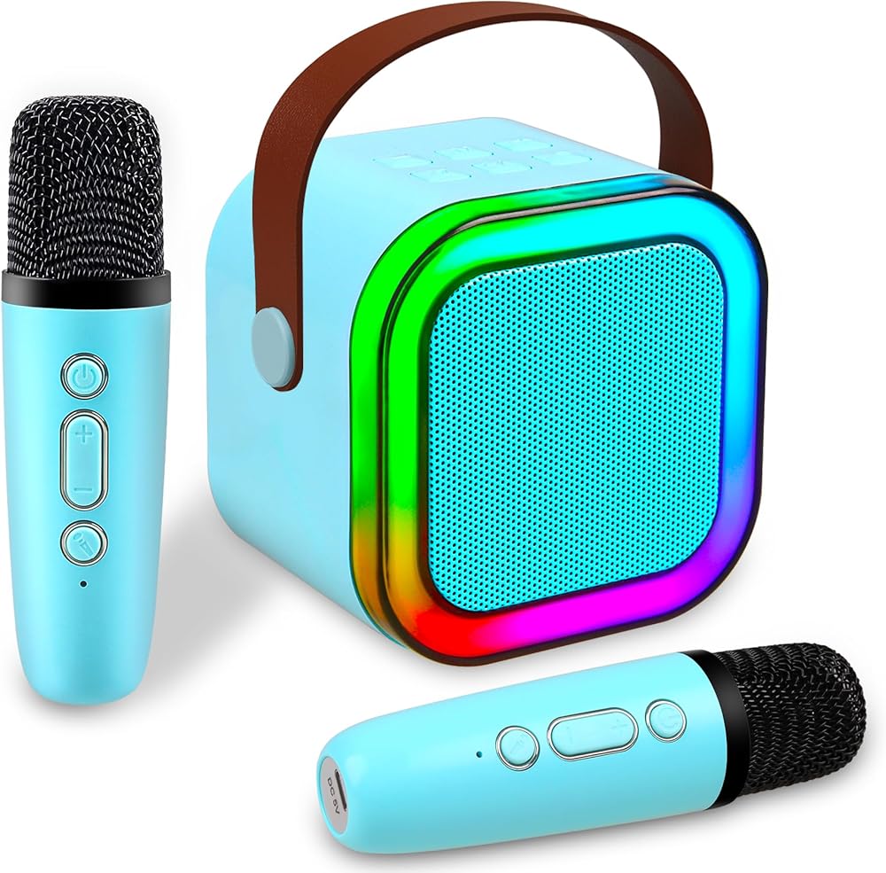 Mini Karaoke Machine, Portable Bluetooth Speaker with 2 Wireless Microphone, Toys for 3-12 Years Old Boys Gifts, Kids Karaoke Microphone Machine Toy for Party/Meeting/Adults/Kids (Blue)