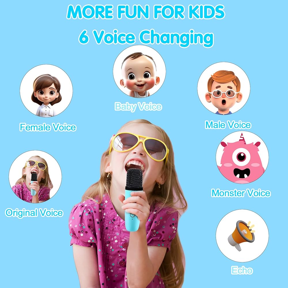 6 Magical Sound Effects and 7 Color Lights - This multi-functional children's karaoke machine has 6 different magical sound effects that can be switched using the "M" button on the product: original voice, female voice, male voice, baby voice, monster voice, accompaniment, suitable for children's toys, fun and interesting. During singing/listening, there are also 7 different color lights that can be switched by pressing the "light button" on the top of the product, providing endless fun and joy for adults and children.